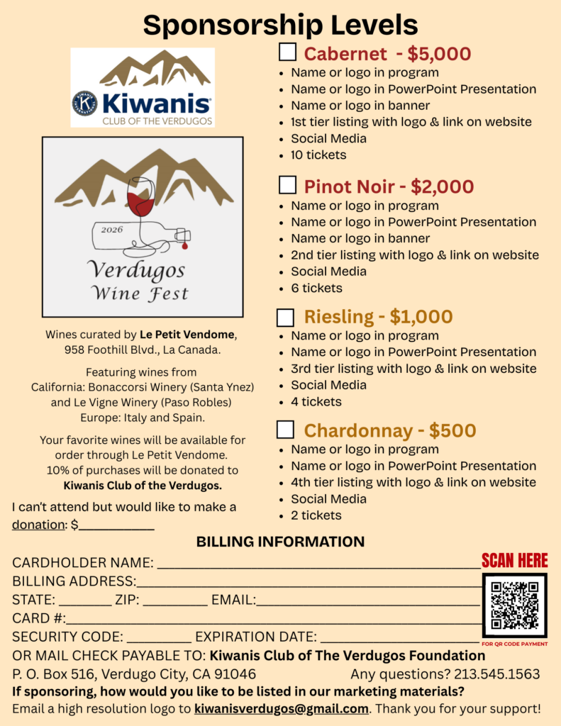 Kiwanis Club of the Verdugos (Tax ID 92-0812364 – 501c4)